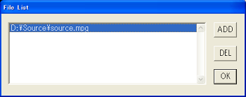 追加で読み込みたいファイルがある場合は[ADD]から追加してください。不要なファイルは、そのファイルを選択して[DEL]で一覧から削除します。