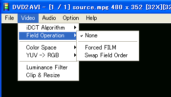 24fps化やフィールドオーダーの変更は、あとでAviSynthで行うことも可能です。