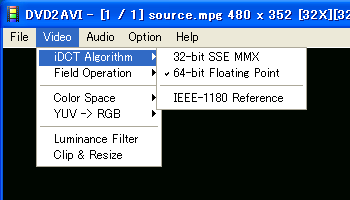 一般的にデコード速度は、「32-bit SSE MMX > 64-bit Floating Point > IEEE-1180 Reference」の順、画質は「IEEE-1180 Reference > 64-bit Floating Point > 32-bit SSE MMX」の順によいとされています。ただし、IEEE-1180 Referenceにはバグが含まれているといわれています。