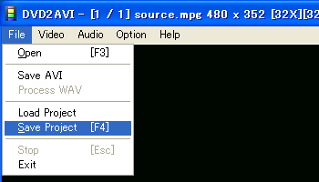 [File] -> [Save Project]から、DVD2AVIのプロジェクトファイル(D2Vファイル)を保存します。