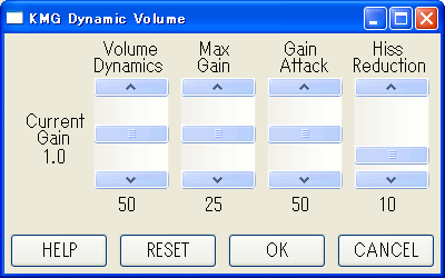 それぞれのプラグインの設定画面で設定を行います(画面はKMG Dynamic Volume20プラグインの設定画面)。