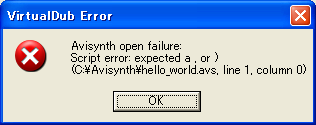 - AviSynthがスクリプトのオープンに失敗したことを宣言しています。