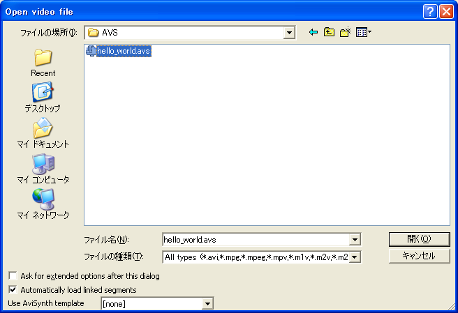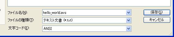 ここでは、仮に、hello_world.avsという名前を付けたとします。
