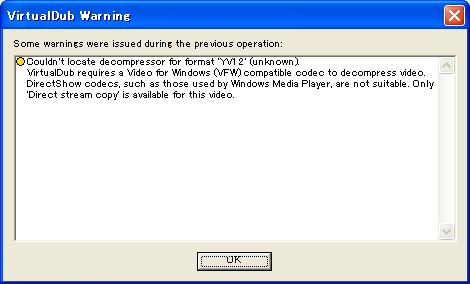 - VirtualDub(VirtualDubMod)でAVSファイルを開くと「Couldn't locate decompressor for format 'YV12' (unknown)」というエラーが出ます。