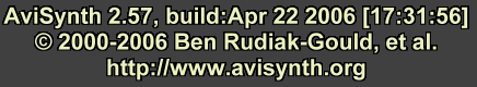 - 1 で作成した AVS ファイルを開くと、AviSynth のバージョン表示を含むビデオクリップが生成されます*1。