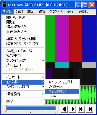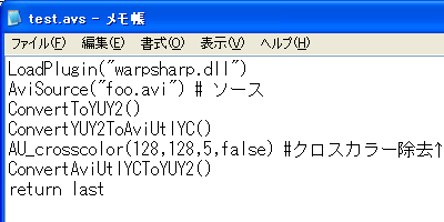 なお、AviUtlでAVSファイルを開く方法については、AviUtlでAVSファイルを開くを参照。