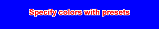 # 背景色が青のクリップを生成 BlankClip(width=320, height=60, color=color_blue) # 文字色が赤、文字の縁の色が白のテロップを追加 Subtitle("Specify colors with presets", align=5, text_color=color_red, halo_color=color_white)