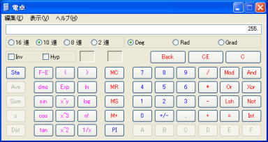 「16進」にチェックを入れると、16進数に変換された数字が表示されます(左の図では10進数255が16進数FFに変換されている)。