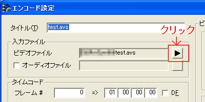 エンコード設定画面が開いたら、入力ファイル > ビデオファイルの右端にある三角形のマークが付いたボタンをクリックします。