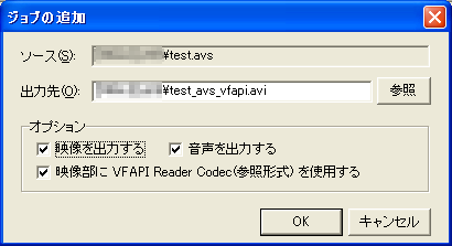 なお、以下の方法を実行するためには、前もってAviSynth用VFAPIプラグインとVFAPI Reader Codecをインストールする必要があります。