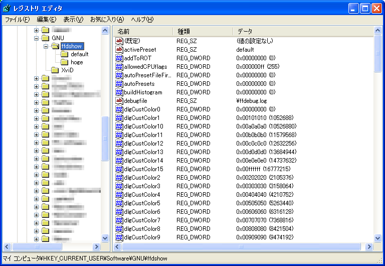 HKEY_CURRENT_USER\Software\GNU\ffdshow\(プリセット名)