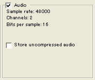 - Store uncompressed audio: 出力ファイルに非圧縮オーディオを格納する