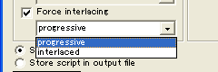 - Force interlacing: インターレースの強制。progressive、interlacedのいずれかを強制的に指定することができる。