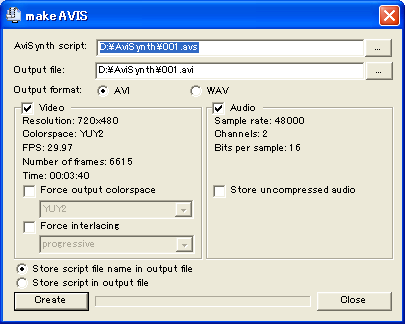 makeAVISは、ffdshow-alpha、または、ffdshowのCVSビルド(ffdshowを参照)に付属しています*2。