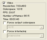 - Force output colorspace: 出力色空間の強制。YUY2、YV12、RGB24などから強制的に指定することができる。
